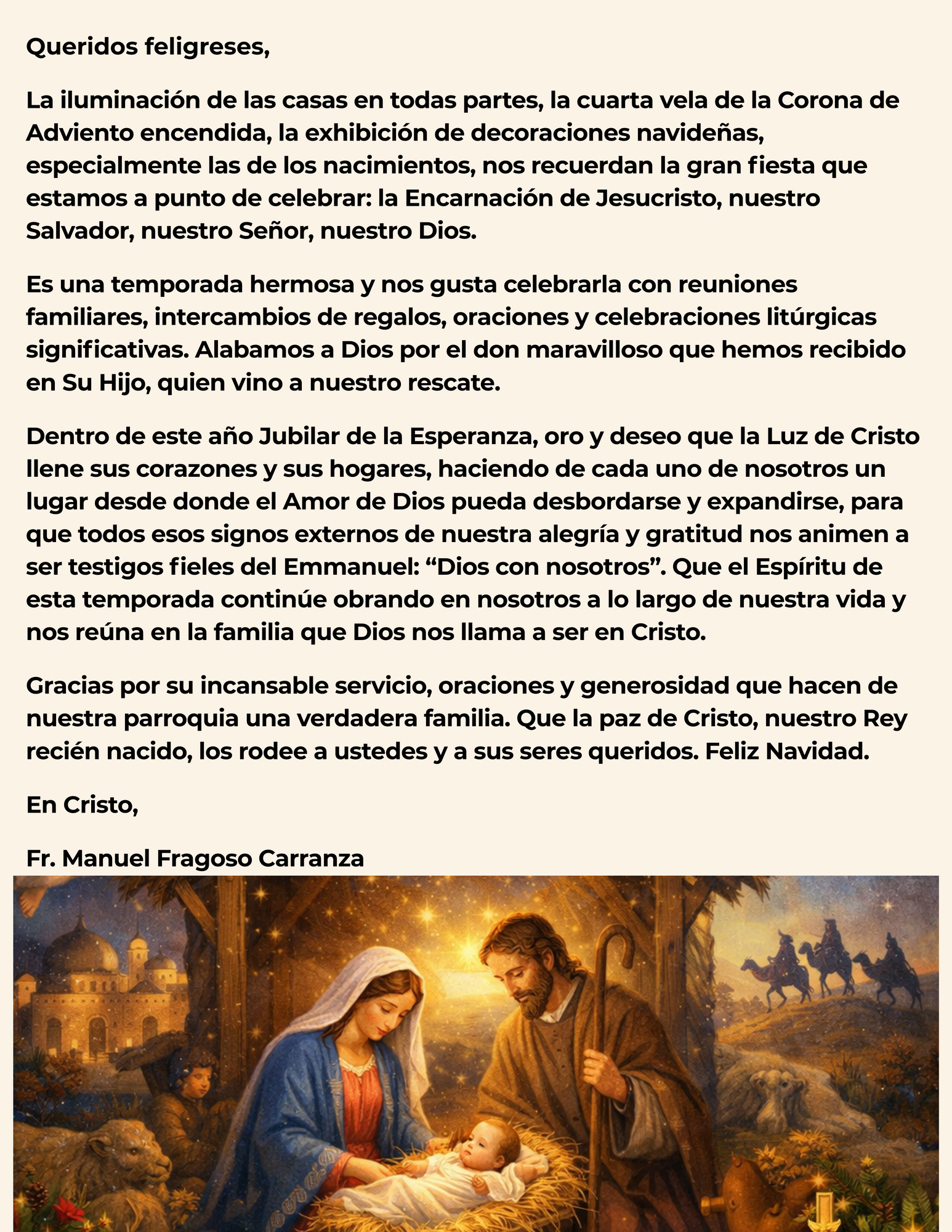 Un Mensaje de Navidad para Nuestra Comunidad Parroquial